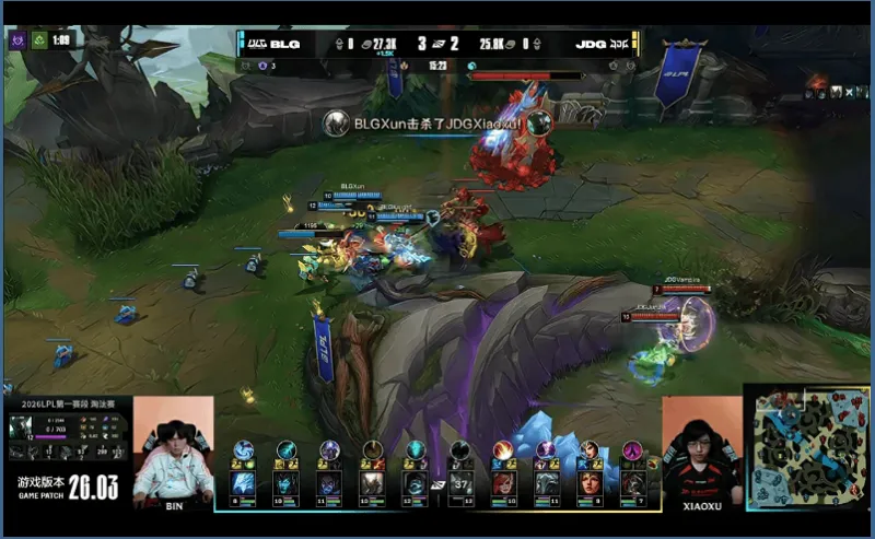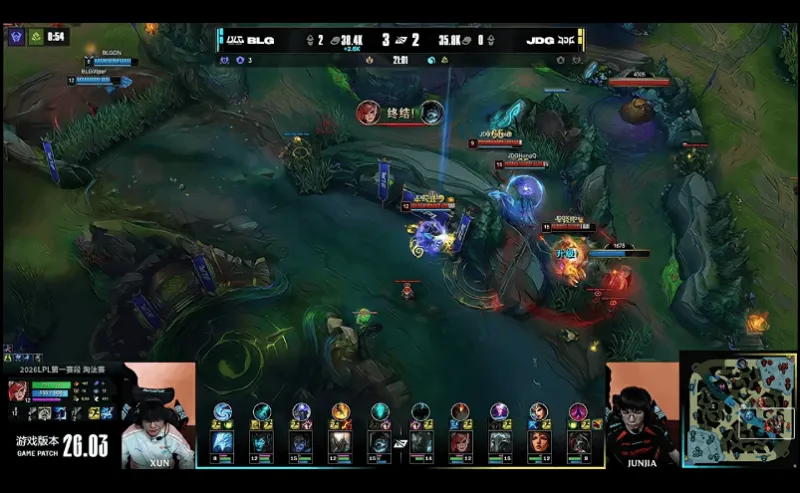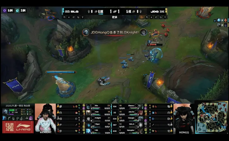 23分钟,小龙团JDG未能拿到小龙,BLG完成0换2